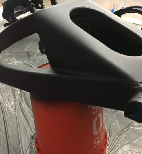 This bike had lots of polished parts for a few years however it's more fun to ride than clean; so, we took a simpler approach. Raptor spray on bed liner.